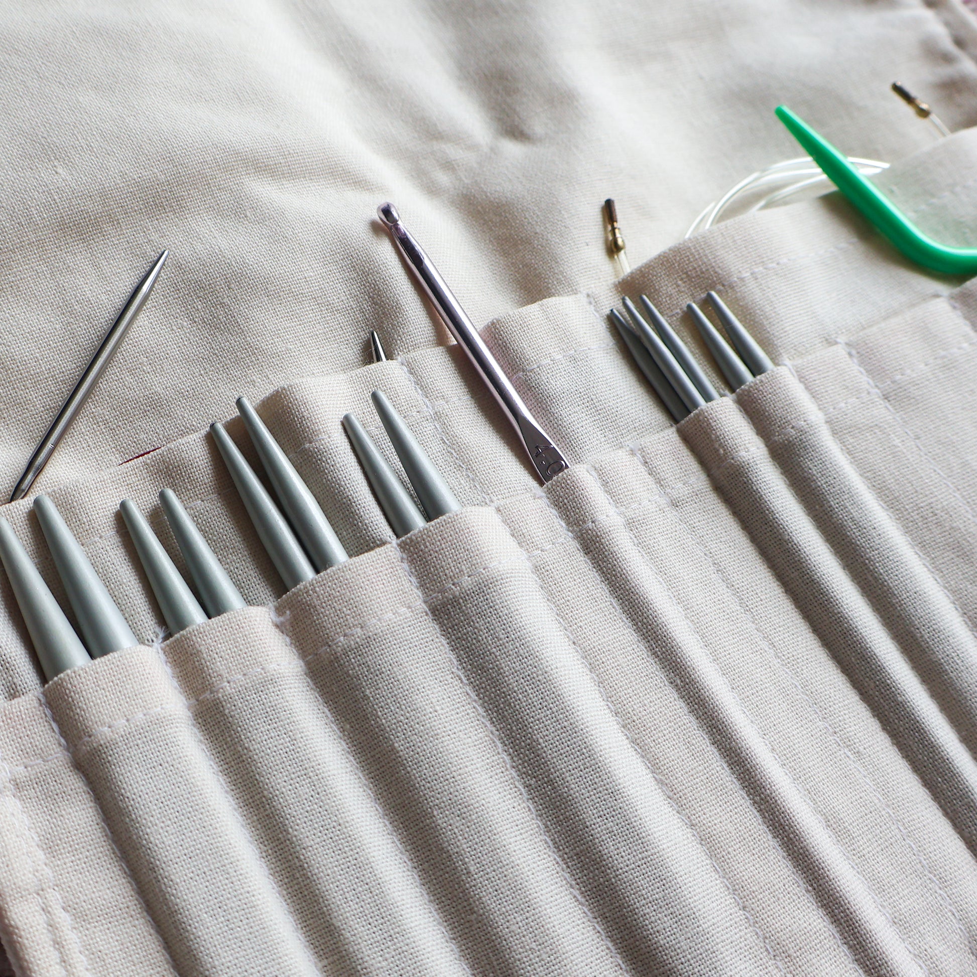 - Can fit circular needles, interchangeable needles, cable needles, crochet hooks, DPNs of up to 6" long