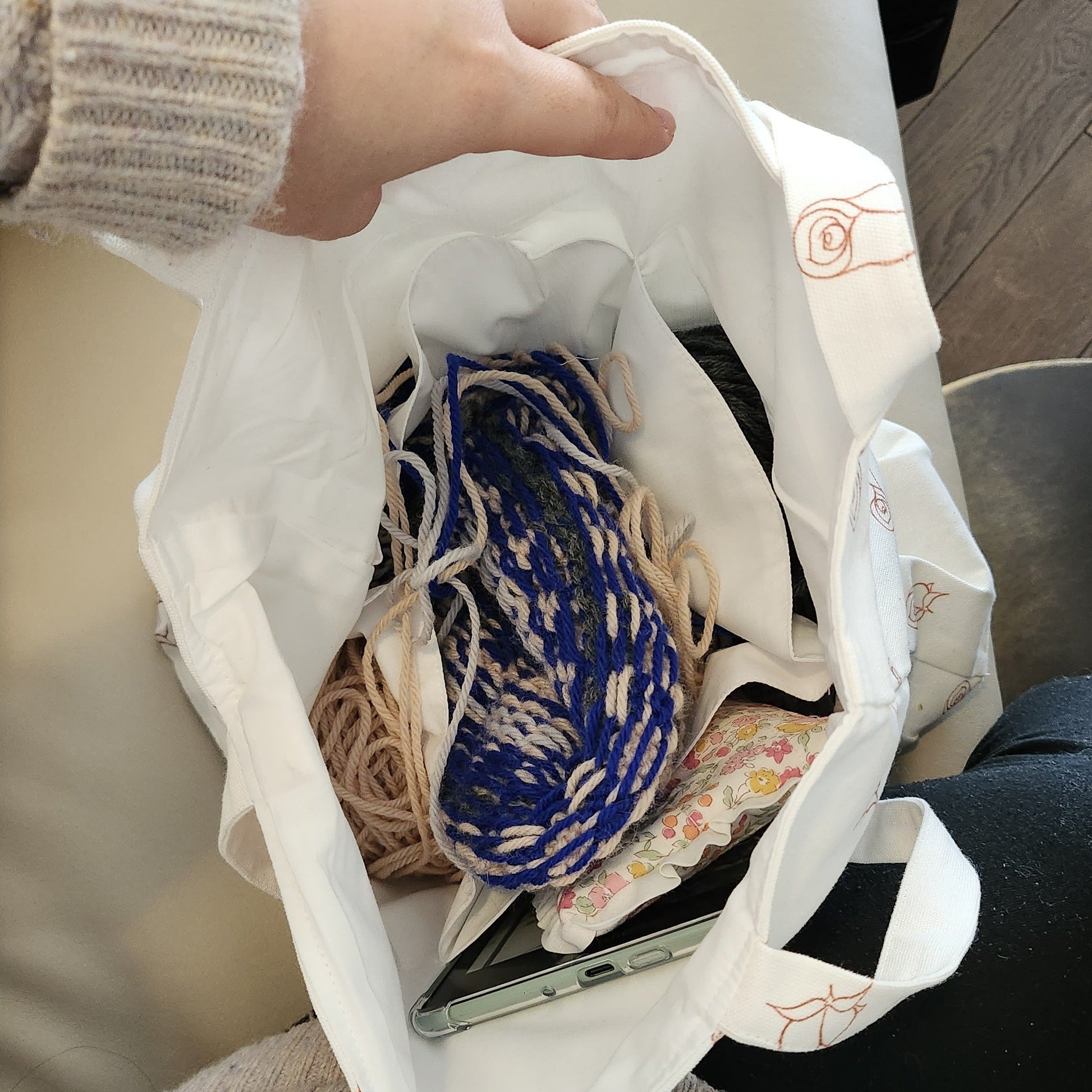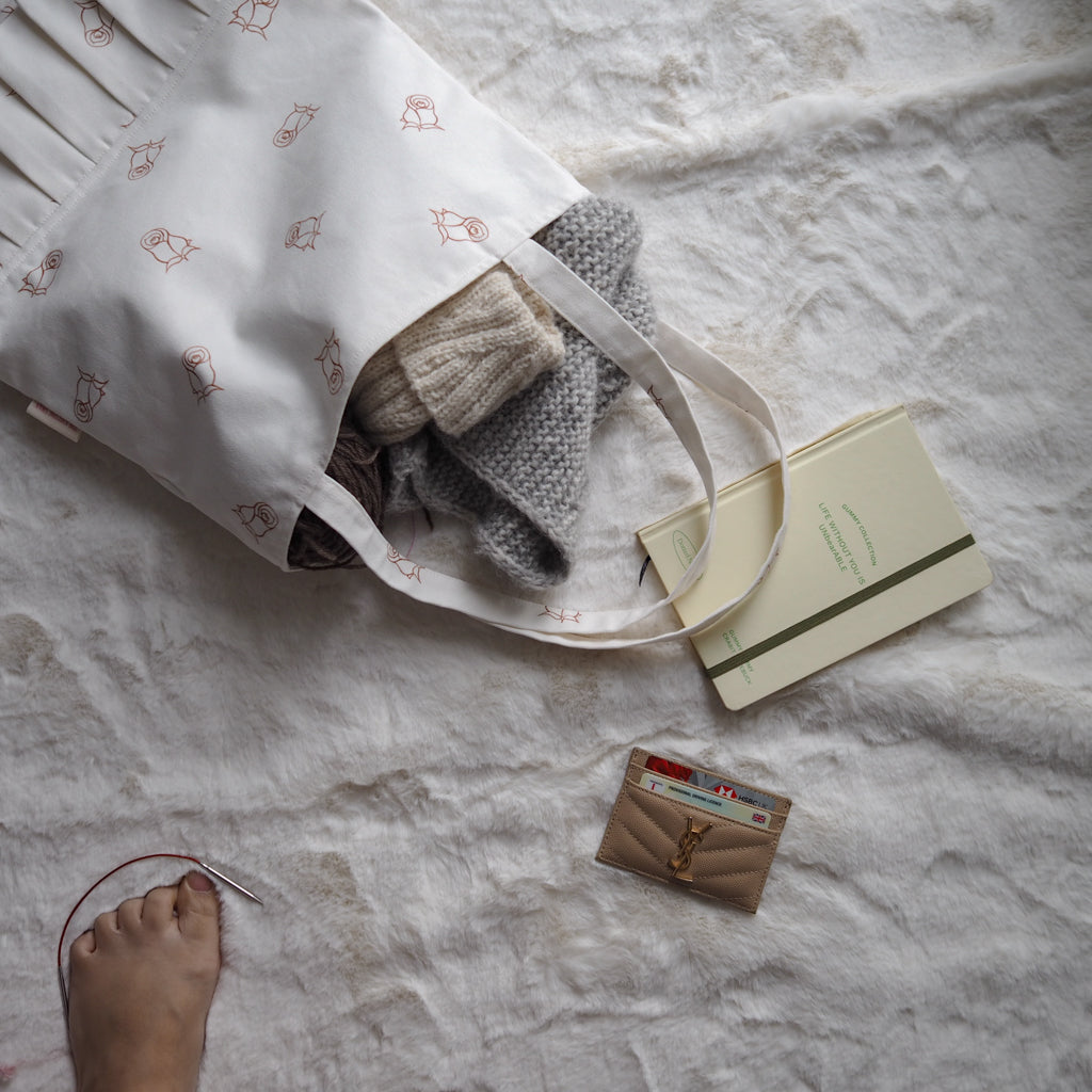 Our Project Tote is so cute with those retro tennis skirt frills! The frills will hide how bulky the bag is even with all your WIPs inside, making you look so chic on a day out! It is perfect to carry a light sweater or a big shawl, plus as many personal belongings as you want!