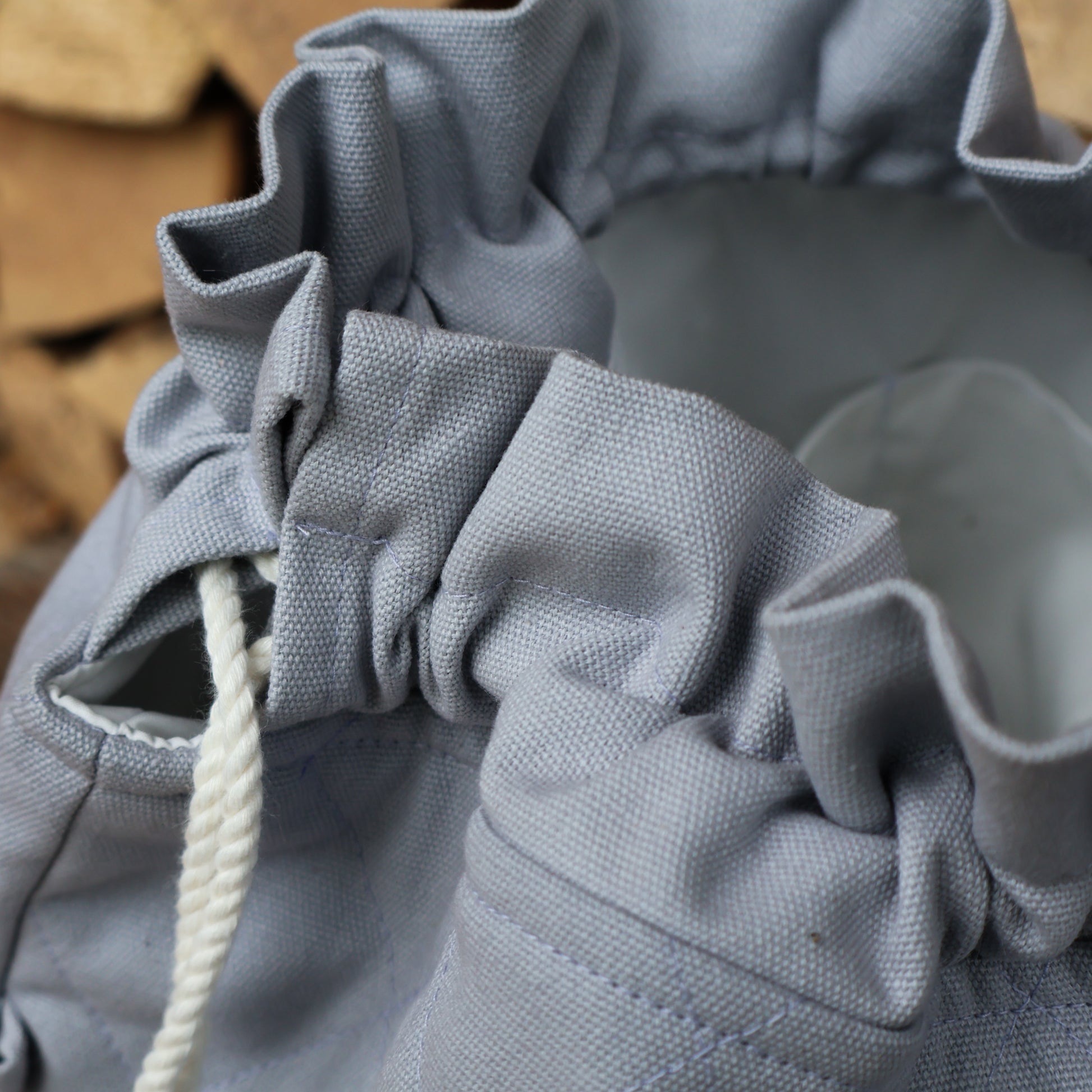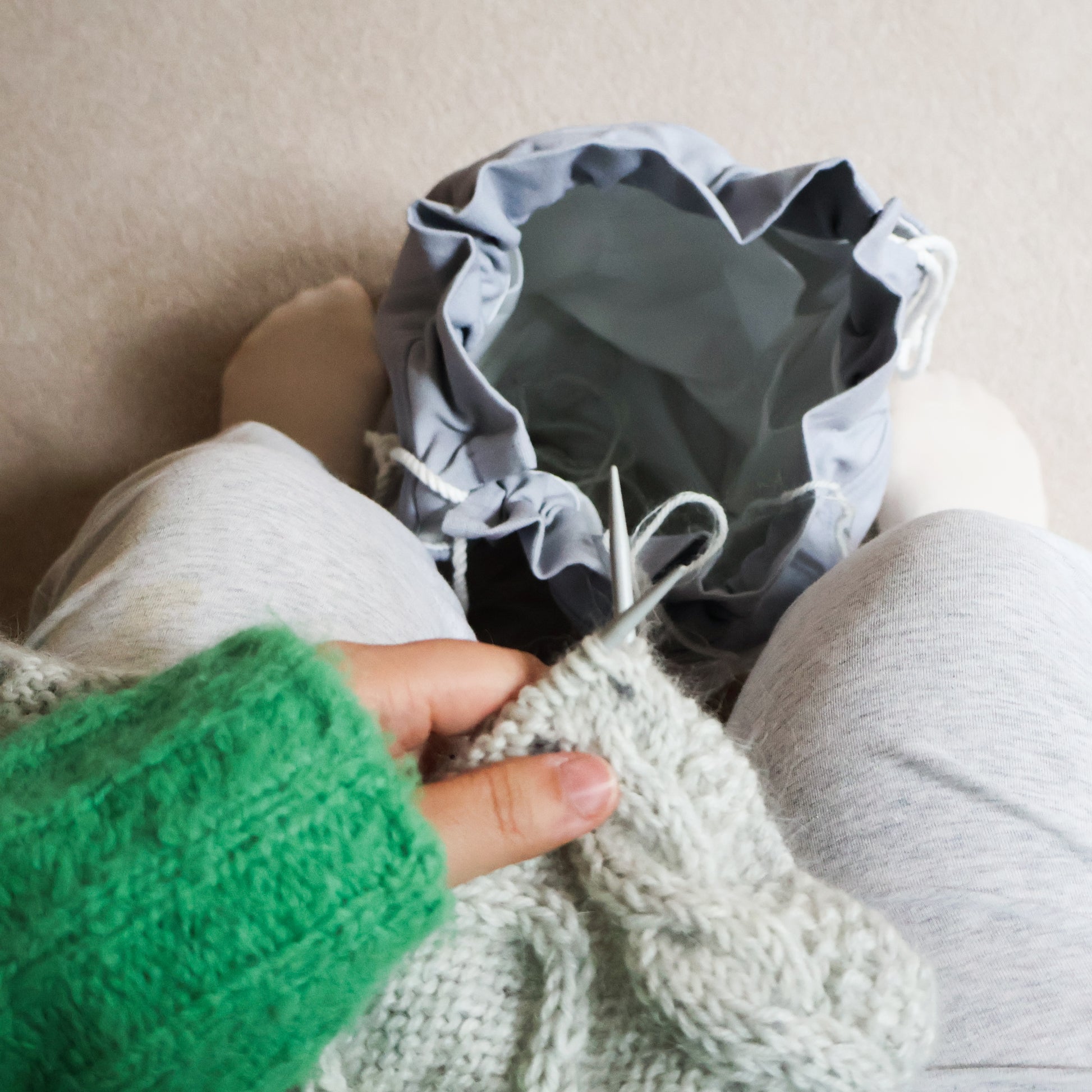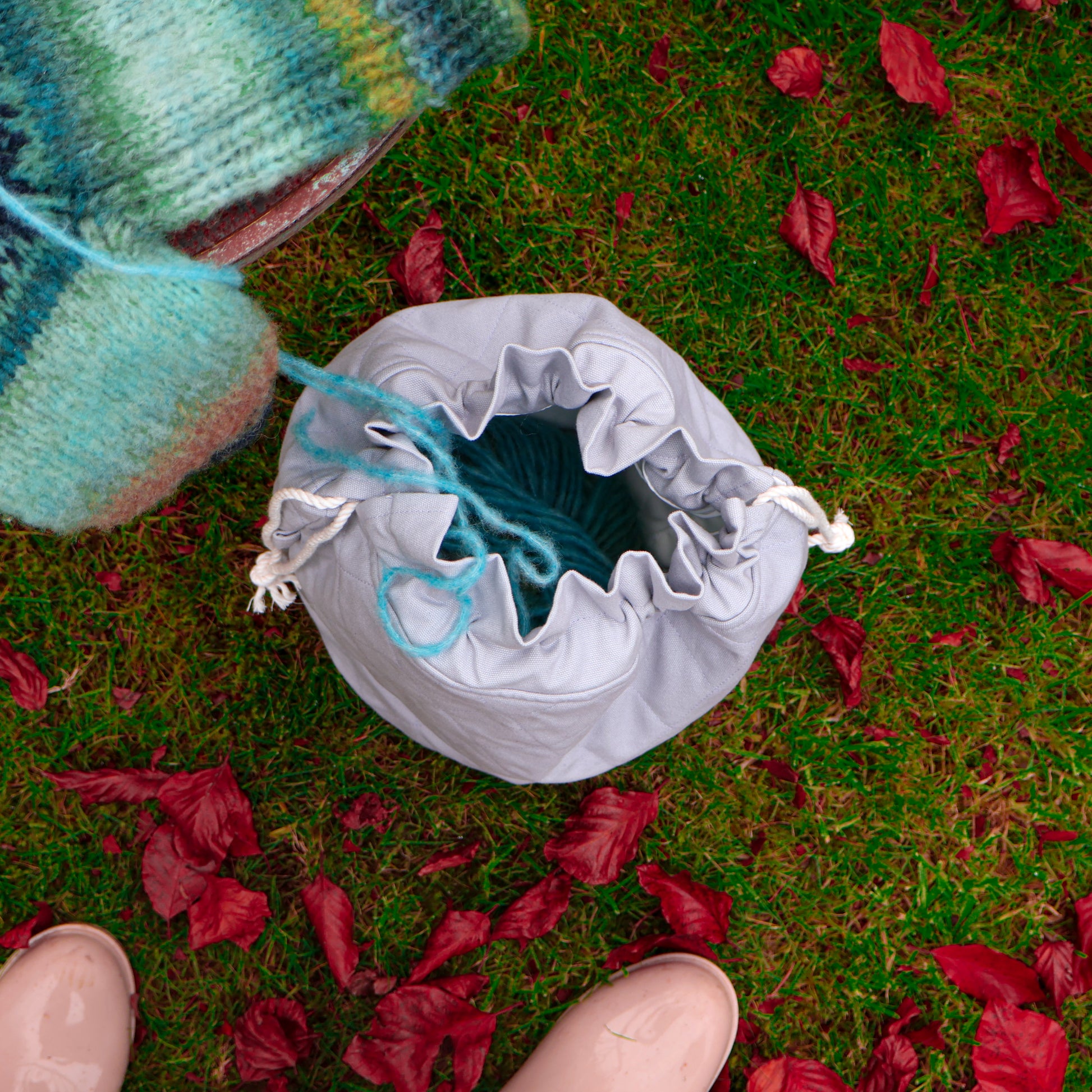This bag will fit up to one chunky cabled sweater or a few light ones, plus pockets for notions, notebooks, wallet, phone and camera—everything you need for a day out knitting! 🧶⛅